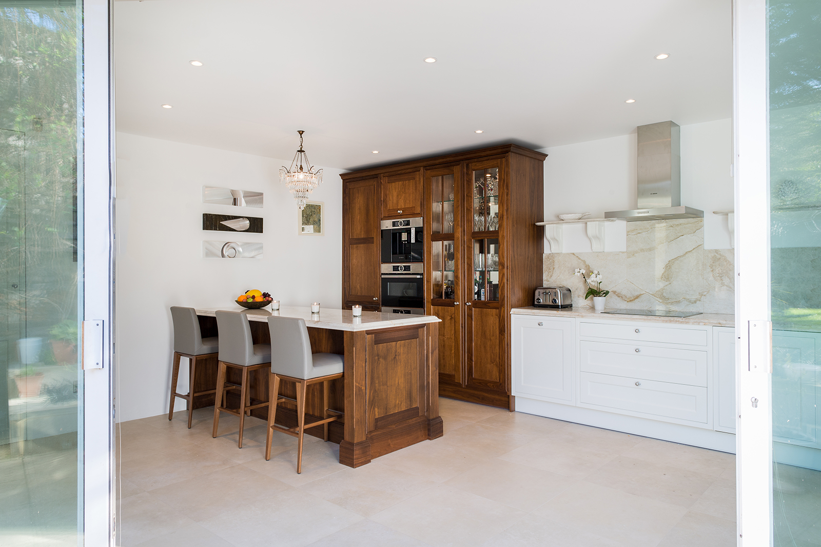 Range: Stoneham Fusion / Edwardian Colour: Stoneham white The owners of this welcoming riverside mews home created a fabulous juxtaposition of old and new. Fans of a monochromatic aesthetic, the client wanted to create a clear division between their open-plan living space and kitchen, complete with clean lines and no-nonsense functionality.